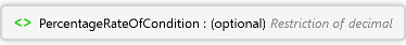 <xs:elementname="PercentageRateOfCondition"minOccurs="0"xmlns:xs="http://www.w3.org/2001/XMLSchema"><xs:annotation><xs:documentationxml:lang="de">Prozentsatz der Kondition </xs:documentation><xs:documentationxml:lang="en">Percentage value of the condition </xs:documentation></xs:annotation><xs:simpleType><xs:restrictionbase="xs:decimal"><xs:totalDigitsvalue="10"/></xs:restriction></xs:simpleType></xs:element>