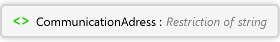 <xs:elementname="CommunicationAdress"minOccurs="1"maxOccurs="1"xmlns:xs="http://www.w3.org/2001/XMLSchema"><xs:annotation><xs:documentationxml:lang="de">Kommunikationsadresse zum davor festgelegten Kommunikationstyp </xs:documentation><xs:documentationxml:lang="en">Communication address related to the previous defined communication type </xs:documentation></xs:annotation><xs:simpleType><xs:restrictionbase="xs:string"><xs:maxLengthvalue="512"/></xs:restriction></xs:simpleType></xs:element>
