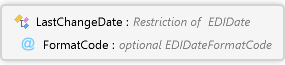 <xs:complexTypename="LastChangeDate"xmlns:xs="http://www.w3.org/2001/XMLSchema"><xs:annotation><xs:documentationxml:lang="de">Letztmögliches Änderungsdatum der Bestellung</xs:documentation><xs:documentationxml:lang="en">Last possible date for change of the order </xs:documentation></xs:annotation><xs:simpleContent><xs:restrictionbase="EDIDate"/></xs:simpleContent></xs:complexType>