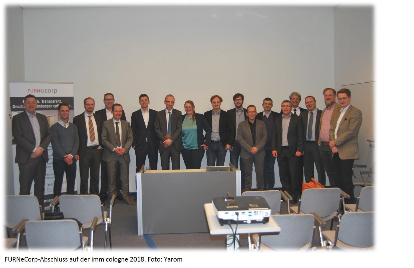 Gemeinsam mit dem Bundeswirtschaftsministerium ans Werk (mit der Förderinitiative FURNeCorp), darauf ausgerichtet digitale Standards zur Optimierung von kundenbezogenen Geschäftsprozessen zu entwickeln.